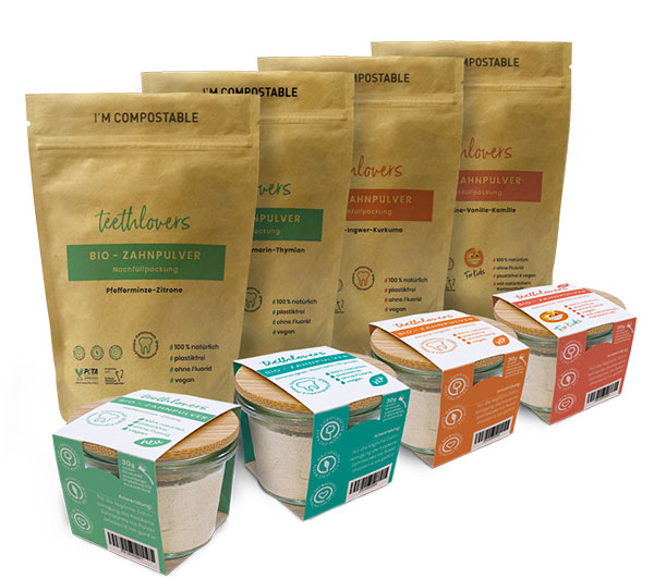 Das Zahnpulver haben wir für uns privat entwickelt, da der Markt uns kein Produkt bot, welches plastikfrei, effektiv, natürlich und lecker war. Mit der in unserem Umfeld entstandenen Nachfrage an unserem entwickelten Produkt, kam die Idee zur Gründung. Und unser Ziel, mit unserem Unternehmen ein nachhaltiges Produkt zu verbreiten und darüber hinaus Mehrwert für Mensch und Umwelt zu schaffen.